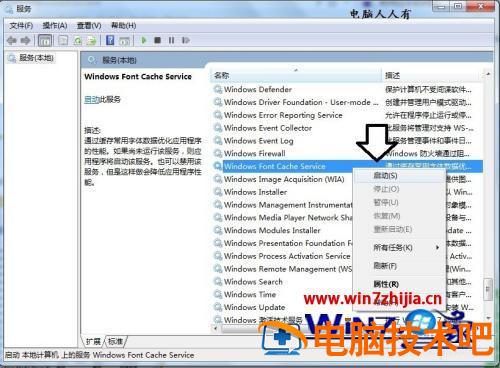 5、依次找到Windows Font Cache Service服务→右键点击启动。