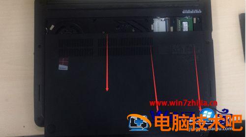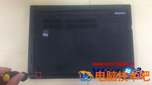 2、原谅我这手机像素,将电脑屁股朝上放倒,拧下三颗螺丝。