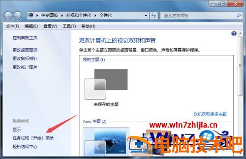 2、之后点击任务栏和开始菜单。