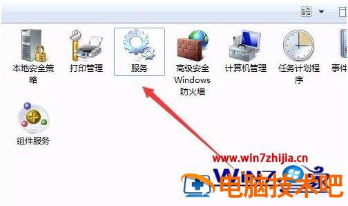 4、在管理工具窗口中,找到服务图标,双击打开Windows7系统的服务窗口。