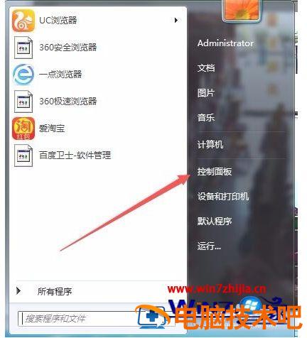1、依次点击桌面左下角的“开始/控制面板”菜单项。