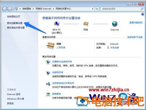 4、然后在网络设置界面中,点击“更改适配器”选项,如图所示。