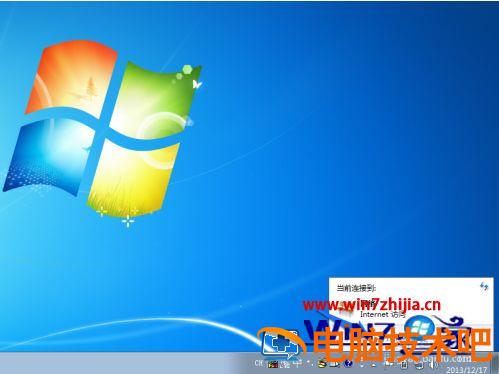 2、这里以 Windows 7 系统为例,点击屏幕右下角任务区的网络图标,如图所示。