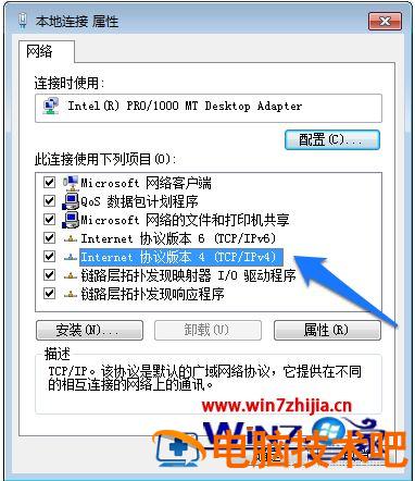 6、在网卡的属性窗口中,找到“TCP/IPV4”选项,双击打开它的属性,如图所示。