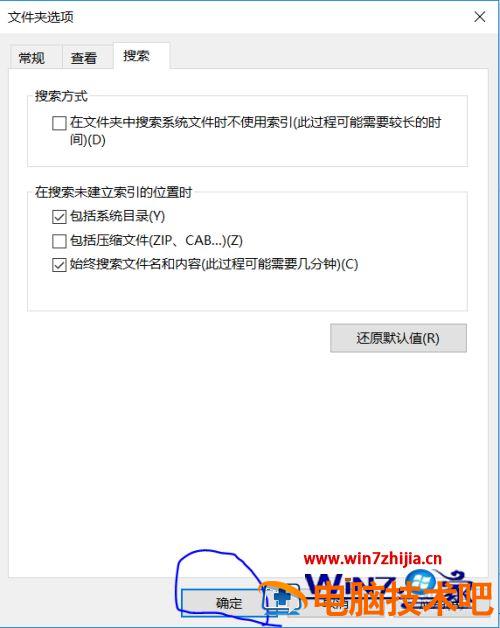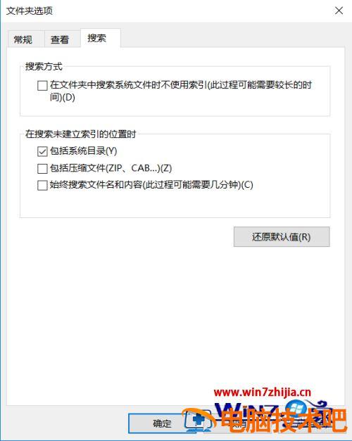 5、弹出如下窗口,在这个窗口中可以设置搜索文件有关的一些选项。