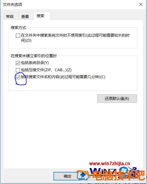 6、勾选“始终搜索文件名和内容”。