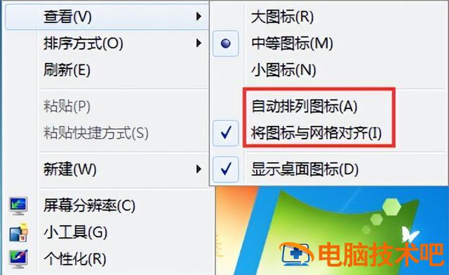 点击桌面空白处的右键,查看自动排列和对齐到网络是否有勾选,如图所示: