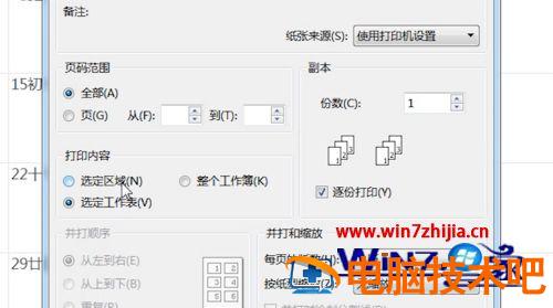 7、打印某一部分时需要在文档中做好标记、在“打印内容”中选择“选定区域”。