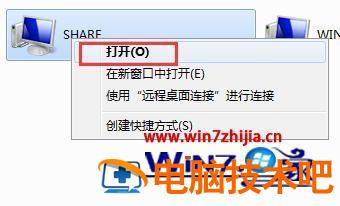 3、查看设置共享打印机的计算机名,点击右键,在打开的菜单项中,选择打开;操作如下。