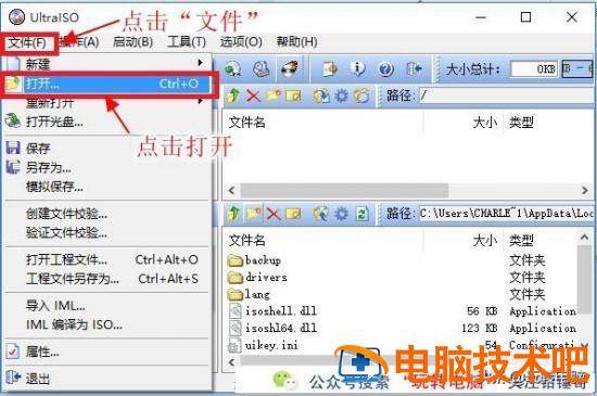 打开UltraISO窗口后,依次点击左上角的文件,打开