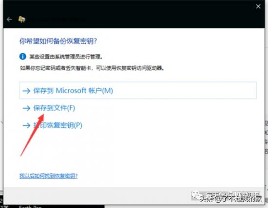 1.保存恢复文件根据提示,一步一步地进行加密设置。一般来说,您可以选择使用密码进行加密,但需要特别注意的是,恢复密码需要保存在非加密的分区文件中,不能保存在根目录下。一定要记住保存位置和密码。