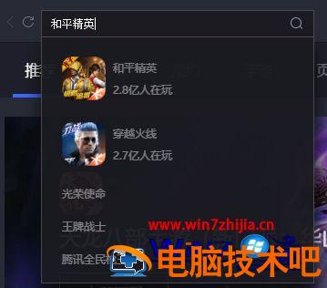 2、在电脑上打开腾讯手游助手,在搜索框中搜索我们想要玩的手机游戏,如:和平精英‘