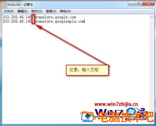 (2)在加入如下两行(IP地址与网址之间必须有一空格):点击文件→保存