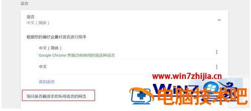 3、在高级设置界面的语言设置下,选择开启询问是否翻译非您所用语言的网页,设置之后,如果打开的网页上的语言不是中文简体,就会在地址栏那边弹出是否需要翻译的按钮,如果需要翻译的话,直接点击翻译即可。