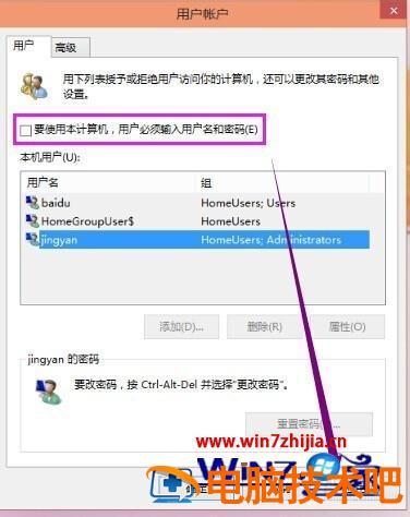 2、进入到用户长户界面,把【要使用本计算机,用户必须输入用户名和密码】前面的那个勾勾取消了,再点击一下【应用】。