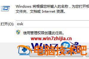 3、在运权行对话框中输入“osk”并点击下方的“确定”按钮;