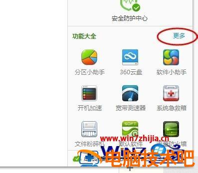 2、然后鼠标点击右下角功能大全的【更多】文字。