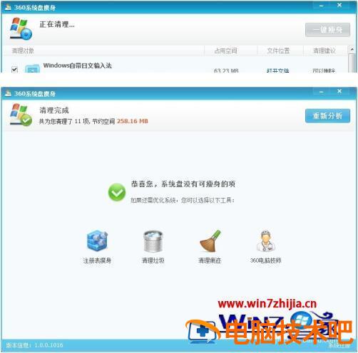 9、还原点设置好以后,软件开始给系统盘瘦身,经过10秒左右时间,会显示瘦身结果。