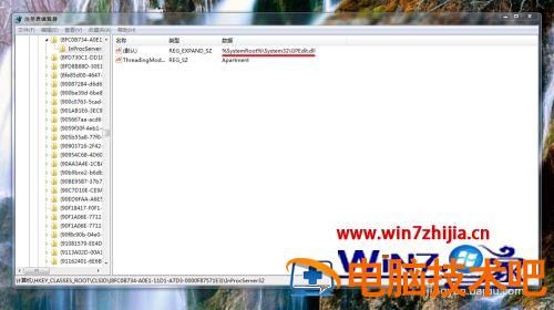 4、再展开”HKEY_CLASSES_ROOT\CLSID\{8FC0B734-A0E1-11D1-A7D3-0000F87571E3}\InProcServer32“,将InProcServer32的数值数据改为”%SystemRoot%\System32\GPEdit.dll” 。