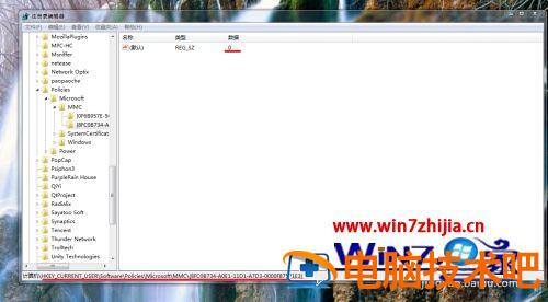 3、依次展开”HKEY_CURRENT_USER\Software\Policies\Microsoft\MMC\{8FC0B734-A0E1-11D1-A7D3-0000F87571E3}”,确保默认数值的数据为”0″。