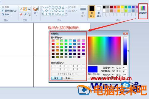 3、接着,在颜色编辑中,选择四种合适的颜色,然后用油漆桶工具进行填充;若觉得某种颜色不合适,可撤销重做。