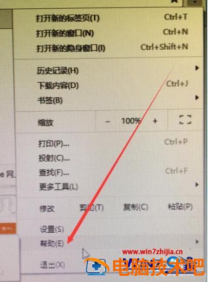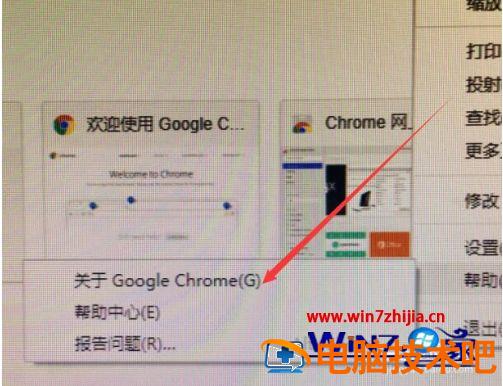3、在帮助的下拉设置中找到关于google chrome。