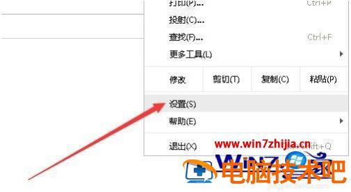 2、在打开的下拉菜单中,点击设置菜单项。