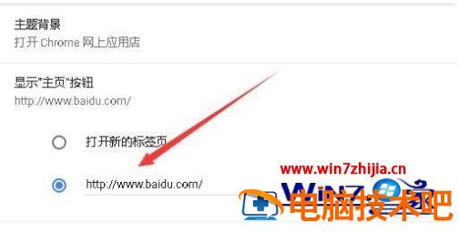 4、这时下面的各项即可选择了,我们选择下面的一项,然后输入主页的网址。这样以后再点击chrome浏览器工具栏上的主页按钮,就可以快速打开刚刚设置的主页了。