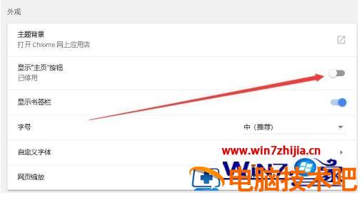 3、这时就会打开chrome浏览器的设置页面,找到“显示主页按钮”设置项,把其后面的开关设置为打开。