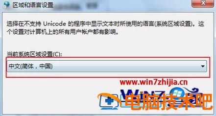 6、重启电脑后,找到语言设置位置,将“当前系统区域设置”设置成“中文(简体,中国)”,点击确定按钮,再次重启电脑即可。