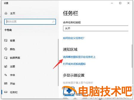2、在打开的界面的右侧【任务栏】下拉并找到【选择哪些图标显示在任务栏上】进入。