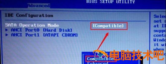 2、此时在该页面的设置下,我们选择【sata operation mode】按回车,将其默认的设置修改为【compatible】即可,最后按F10保存。