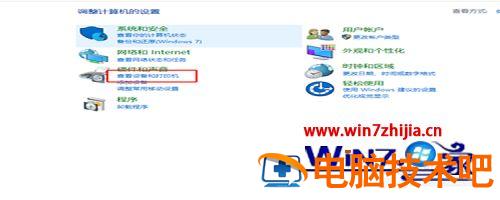 5、在开始菜单那里找到进入控制面板的入口,进入控制面板的主界面,在主界面里面找到“设备和打印机”。