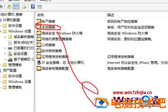 4、打开本地策略。