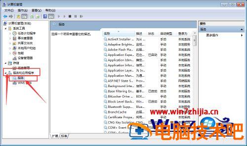 2、打开的计算机管理界面依次打开左侧“服务和应用程序”-“服务”。