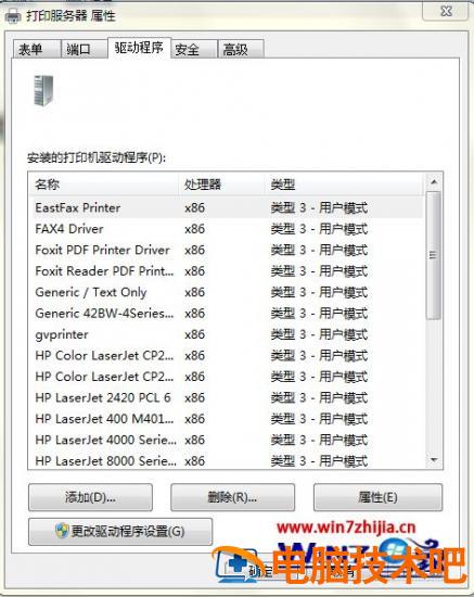 3、再打开服务器属性,把该驱动删除。此时,再重新添加网络打印机,打印测试页(如果还是同样报错,删除驱动后重启电脑),经过以上操作基本上问题就解决了。
