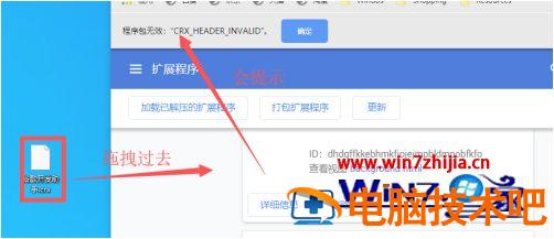 1、当我们把谷歌浏览器插件拖拽到扩展程序页面时,出现如图所示无效错误。
