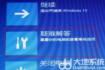 3、进入windowsRE模式后,点击下面的“疑难解答”。
