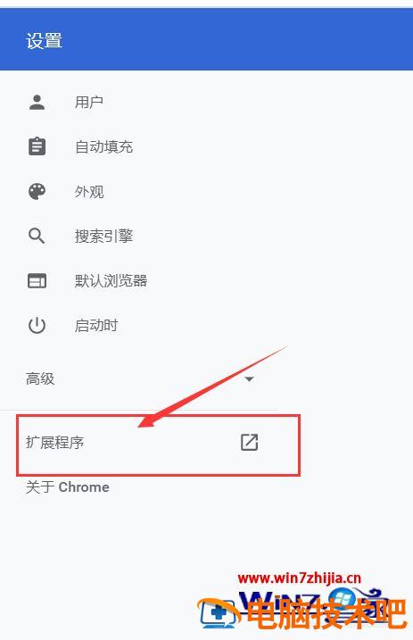 3、在设置弹窗里找到扩展程序;