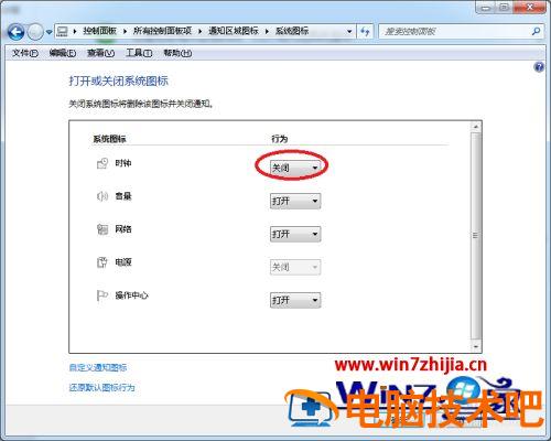 4、在系统图标对话框我们看到时钟是关闭的,选择打开并确定。