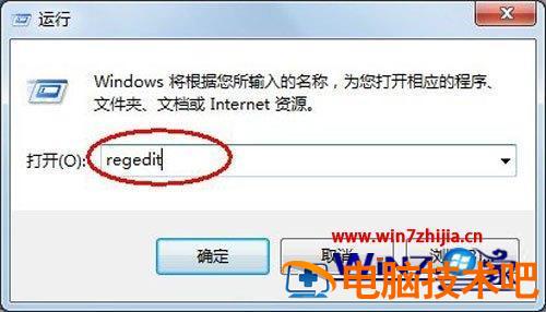 2、在运行的界面输入“regedit”回车之后打开win7旗舰版的注册表编辑器。