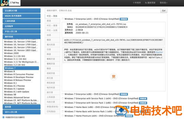 在此页面上,单击操作系统,其中有各种版本的操作系统,例如,您需要下载windows7.点击它,找到右侧需要的系统版本,点击详细信息复制ed2k链接,可使用快雷、旋风、百度网盘离线等工具下载;