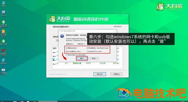 第六步:勾选windows7系统网卡和usb驱动安装(默认安装也可以),再次点击是