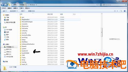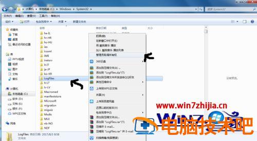 5、然后打开C盘定位C:\Windows\System32文件夹下,找到LogFiles文件。