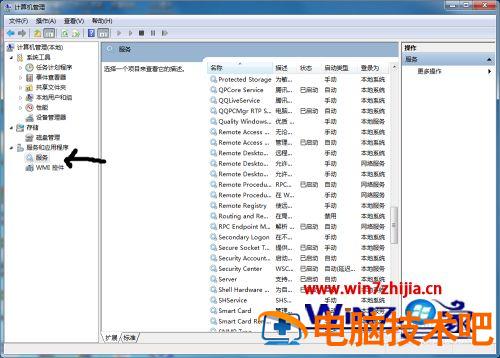 1、右键—桌面计算机-管理,打开计算机管理窗口,找到服务和应用程序,并点击进去。