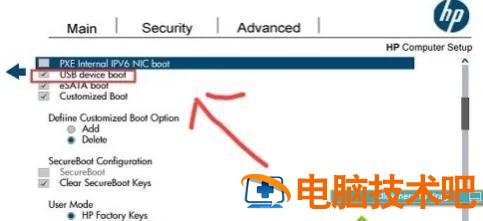 惠普电脑需要开启USB设备启动: