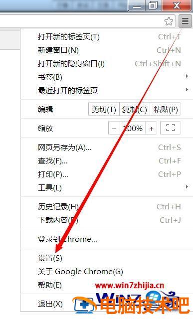 1、首先打开谷歌浏览器,点击右上角菜单,在菜单中选择设置。