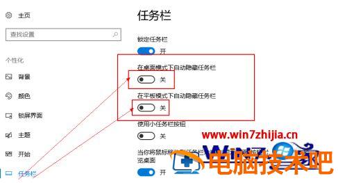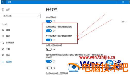5、在打开的页面中可以看到 在桌面模式下/平板模式下自动隐藏任务栏 的选它是出于开启状态的。