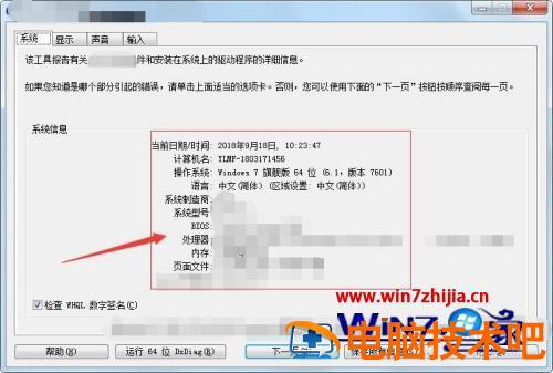 4、弹出窗口中,包含很多系统信息及硬件的品牌型号。