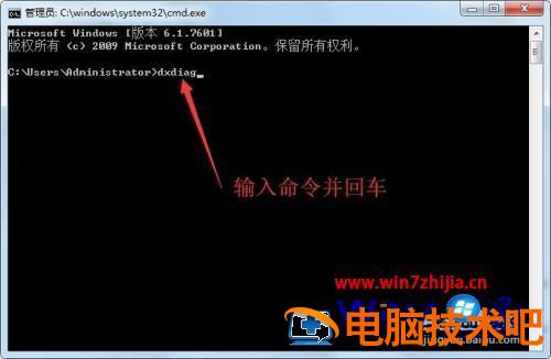 3、管理员界面输入dxdiag并回车。